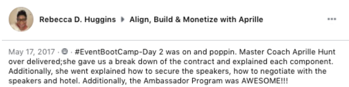 I will teach you how to incorporate experiences within your event that are on-brand and consistent with your overall conference program.